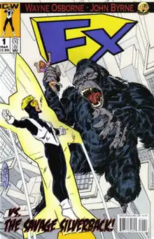 FX is a six-issue comic book limited series written and created by Wayne Osborne and drawn by John Byrne. It was published by IDW Publishing in 2008.[1] Osborne, a lifelong comics fan, realized his dream by hiring Byrne, a prominent professional comics artist, to help create his own comic book title.