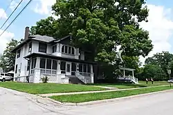 The Fair Oaks Historic District is a nationally recognized historic district located in Muscatine, Iowa, United States. It was listed on the National Register of Historic Places in 2020.[1] At the time it was studied for the Muscatine Historic Preservation Commission it contained 231 resources, which included 176 contributing buildings and 55 non-contributing buildings.[2] Dr. James Weed was an early settler in Muscatine. He married Mary Swift in 1847, and the couple settled a farm on the northeast side of town where they built a Gothic Revival house from 1852 to 1854 (a contributing building). The couple donated 63 acres (25 ha) of wooded land on the east side of their property along the Mississippi River for a community park. Along the southern and western edges of their property, they plated subdivisions and eight houses had been built by the time of Mary's death in 1908.[2] The rest of their property was opened up for development at that time and it was given the name Fair Oaks in a city-wide contest. It was divided into 101 lots. There were 57 houses in the subdivision by 1919, and 25 houses and a grocery store were built in the 1920s. Between 1930 and 1944 another 15 houses were built, 11 houses between 1945 and 1954, 13 houses between 1955 and 1965, and four houses since 1965.