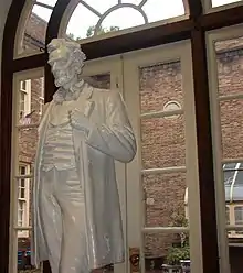 A statue of Abraham Lincoln in front of the now-defunct Senior Court before 2009. The Senior Court was later replaced by a media center.