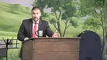Steven Anderson preaching a sermon on the post-tribulation rapture, a core doctrine of his church, on April 30, 2017