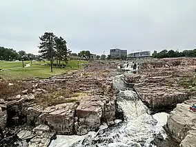Falls Park is a public park in north central Sioux Falls, South Dakota, surrounding the city's waterfalls.[1] The park includes a cafe, an observation tower, and the remains of an old mill.