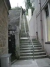 Jacob's Ladder, an 1840s flight of mostly dressed granite steps, rises from Killigrew Street to Vernon Place.[18]