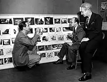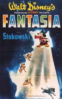 Ideas to produce a complete feature film were pursued in February 1938, when inquiries were made to extend Stokowski's contract.[24] In August, Disney asked Stokowski's representative to have him return to the studios to select material for the new film, which was initially titled The Concert Feature.[18] Disney agreed to pay Stokowski $80,000 plus royalties for his services.[22] The pair further thought of presenting the film with an on-screen host to introduce each number in the program. Both had heard composer and music critic Deems Taylor provide intermission commentary during radio broadcasts of the New York Philharmonic, and agreed he would be most suitable for the role.[25] Disney did contact Taylor about the project, but by then work on Pinocchio, Bambi, and development on his new Burbank studio kept him too busy to work on the new feature.[26] In a change of plans, Taylor was asked during a call on September 3, 1938, leave to come to the studios as soon as possible. He left New York City for Los Angeles by train two days later for a month's visit, and was paid $1,440 per week.[27]