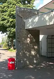 From 1962 to 1964 a 1,000m long railway repair workshop (Betriebswerkstatt) was built in Farmsen which was needed for the then completed U1 line. At the same time a second platform with two tracks was constructed at Farmsen station along with a new entrance from the west, where a stele by well-known sculptor Horst Janssen was erected. An entrance from the bus stop south of the station was missing until the station was fully renovated in 1996. Also a lift was added then.[1]