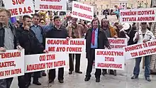 1,000,000 divorced fathers are living in Greece. With the present Greek family civil law, there is almost no option for shared or joined parenting between parents in a case of divorce. In 98% of these cases, the Greek judges decide against the fathers and order that the mothers will have the exclusive child custody. The unic association SYGAPA with 35.000 members, hold many activities for equality between parents and for changing the Greek civil law. As of 2013Greek fathers are still expecting real equality from politicians. They have created the "European Social Movement" covering all European countries.