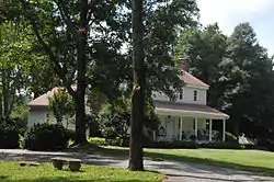 Faucett Mill and House, also known as Coach House and Chatwood, is a historic grist mill, home, and national historic district located near Hillsborough, Orange County, North Carolina. The mill was built before 1792, and is a 2+12-story, heavy timber frame, weatherboarded building. It is sided alongside a reconstructed mill race and the Eno River. The Faucett House was built about 1808, and is a 2+12-story, Federal style frame dwelling, with an original one-story rear wing. The house's southwest wing was originally a separate dwelling known as the Naile Johnson House. It was added to the Faucett House about 1938. Also on the property are the contributing mill cottage, barn, and a section of the "Great Road."[2]