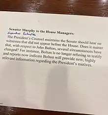 A question for the House managers of the first impeachment trial of Donald Trump prepared by Senator Chris Murphy