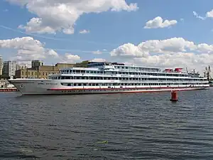 The Feliks Dzerzhinskiy (Russian: Феликс Дзержинский) is a Valerian Kuybyshev-class (92-016, OL400) Soviet/Russian river cruise ship, cruising in the Volga basin. The ship was built by Slovenské Lodenice at their shipyard in Komárno, Czechoslovakia, and entered service in 1978. She was named after the Soviet statesman Felix Dzerzhinsky alias Iron Felix. At 3,935 tonnes,[5] Feliks Dzerzhinskiy is one of the world's biggest river cruise ships. Her sister ships are Valerian Kuybyshev, Mikhail Frunze, Fyodor Shalyapin, Sergey Kuchkin, Mstislav Rostropovich, Aleksandr Suvorov, Semyon Budyonnyy and Georgiy Zhukov. Feliks Dzerzhinskiy is currently operated by Vodohod, a Russian river cruise line. Her home port is currently Nizhny Novgorod.