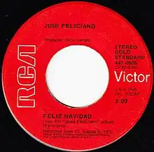 "Feliz Navidad" (Spanish: [feˈlis naβiˈða(ð)]; lit. transl. "Merry Christmas") is a Christmas song written and first recorded in 1970 by Puerto Rican singer-songwriter José Feliciano.[1][2] With its simple, heartfelt lyrics - the traditional Spanish Christmas/New Year greeting "Feliz Navidad, próspero año y felicidad" ("Merry Christmas, a prosperous year and happiness"), followed by text in English words "I wanna wish you a Merry Christmas from the bottom of my heart" - it has become a Christmas classic and has gained popularity around the world.