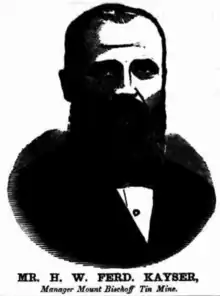 Heinrich Wilhelm Ferdinand "Ferd" Kayser, FRGS (1833 – 12 October 1919) was the mine manager of Mount Bischoff Tin Mining Company for thirty years.