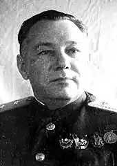 He was promoted to the rank of colonel general on 29 May 1945.[2] After the war, he was appointed deputy commander of the Central Group of Forces in Austria. Since 1949, he was the deputy commander of the Belarusian Military District and in November 1953 of the Carpathian Military District. In 1955–1960, he was Chairman of the Central Committee of the DOSAAF of the Ukrainian SSR.
