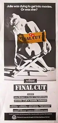 Final Cut is a 1980 Australian thriller film directed by Ross Dimsey. It was the first movie funded by the Queensland Film Corporation, who provided half the budget.[1] The Australian Film Commission and private investment provided the rest of the finance. It was originally envisioned as a tele movie but then developed into a feature.[2]