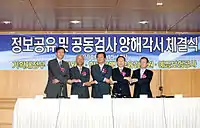 Following the September 2009 signing of the memorandum of understanding (MOU) on information sharing and joint examination among the FSS, the Bank of Korea, the Ministry of Strategy and Finance, the FSC, and the Korea Deposit Insurance Corporation, the FSS and the Bank of Korea agreed to widen the range of information shared between the entities and increase cooperation to promptly execute joint examinations for emergency cases.