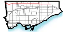 Finch Avenue is an arterial thoroughfare that travels east–west in Toronto, Ontario, Canada. The road continues west into the Regional Municipality of Peel as Regional Road 2 and east into the Regional Municipality of Durham as Regional Road 37.