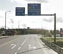 The Finnish national road 55 (Finnish: Kantatie 55; Swedish: Stamväg 55) is the 2nd class main route between the municipality of Mäntsälä and the city of Porvoo in southern Finland.[1][2] It also passes through the municipality of Askola. Going in the opposite direction, from Mäntsälä to Hanko, the road continues as the 1st class main road 25. Together with the aforementioned road, it forms the Helsinki Metropolitan Circuit and is often referred to as the outer beltway of the Greater Helsinki or also known as the Ring V.