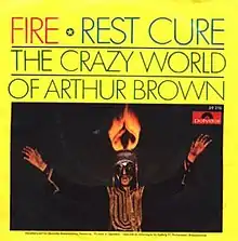 "Fire" is a 1968 song written by Arthur Brown, Vincent Crane, Mike Finesilver and Peter Ker.[1] Performed by the Crazy World of Arthur Brown, it was released as a single and on the band's debut album, also called The Crazy World of Arthur Brown. The single became a transatlantic hit, reaching number one in the UK and Canada and number two in the United States, while hitting the top 10 in markets across Europe.