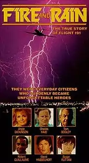 Fire and Rain is a 1989 American made-for-television disaster film directed by Jerry J. Jameson, starring Charles Haid, Angie Dickinson, and Tom Bosley, as well as an all-star ensemble television cast in supporting roles. It is based on the Delta Air Lines Flight 191 plane crash at Dallas/Fort Worth International Airport on August 2, 1985, as depicted in Fire and Rain: A Tragedy in American Aviation (1986) by Jerome Greer Chandler.