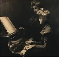 Another technique in which Baes excelled was charcoal drawing. He liked drawing on large sized sheets as demonstrated in The piano lesson.[8]