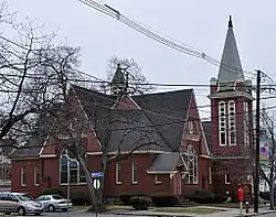The First Baptist Church is a historic church building at 457 Main Street in Stoneham, Massachusetts, United States, housing an evangelical congregation. The church was built in 1892 and added to the National Register of Historic Places in 1984.[1] It is one central Stoneham's three 19th-century churches, and is a fine local example of Queen Anne architecture.[2]