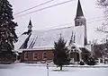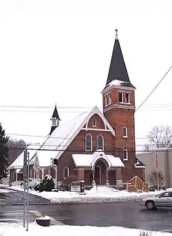 The First Baptist Church of Camillus is a historic Baptist church located at 23 Genesee Street in the Village of Camillus, Onondaga County, New York. It is credited to architect Archimedes Russell and built in 1879–1880. It is a brick church building consisting of a rectangular nave with a steeply pitched gable roof, corner bell tower and steeple, and a hip roofed church hall at the rear. The Camillus Baptist Church was organized in 1804.[2]:5