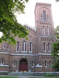 First Baptist Church of Interlaken is a historic Baptist church located at Interlaken in Seneca County, New York. It was constructed in 1861 and is a brick and stone church with a vernacular Romanesque Revival style and decorative features. It features two irregular corner towers that convey an overall asymmetry to the edifice.[2]