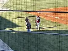 Outfield being patrolled by the visiting Montgomery Biscuits