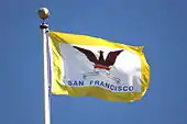 The Flag of the City and County of San Francisco is the municipal flag of San Francisco, California. The flag's central symbol, a rising phoenix, often is assumed to refer to the city's recovery from the 1906 earthquake and subsequent fires. However, the phoenix had been a civic symbol of San Francisco at least since 1852, when it featured on the first official seal of the city. The Board of Supervisors of the City and County of San Francisco codified the design of the current flag on December 16, 1940.