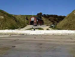 A north station at Flamborough was built in 1871 as No. 1 station, Flamborough.[1] No. 2 site was built in the same year, but closed in 1938. Both sites were opened after the Great Gale of 1871 when many ships were wrecked along the east coast of England.[2] As the coastline at Flamborough Head juts out for 6 miles (9.7 km) into the North Sea, having two sites on either side of the Head would mean that from wherever the wind was blowing in bad weather, at least one of the lifeboats could be launched.[3] A slipway was added to the No. 1 site in 1890, but ultimately, the two Flamborough sites were amalgamated into one on the northern site in the 1930s.[4] Both sites used skids and poles to aid the launching of the lifeboats into the water, and in 1934, when the No. 1 lifeboathouse was enlarged for the Elizabeth and Albina Whitley, a turntable was also added at the top to aid recovery of the vessel.[5]