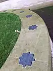 The soil held in the grass bed was collected by children from 70 war cemeteries and battlefields in Flanders in 'ceremonies of remembrance'.[1][2] Prince Philip, Duke of Edinburgh and Prince Laurent of Belgium were present for the ceremony in Ypres to hand over the sandbags of soil for the memorial on Armistice Day in 2013.[1] The soil was carried by Belgian and British schoolchildren and soldiers from the British Household Division, who loaded the soil onto a gun carriage of the King's Troop.[2] From Belgium the soil was transported by sea by the Belgian Navy's frigate Louisa Marie (F931) and was given to the British Army on 29 November 2013 while alongside HMS Belfast. The sandbags were then transported through London on the original gun carriage to the memorial garden.[2]