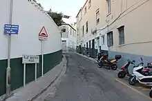 The road runs along the west side of the Rock of Gibraltar, leading to the Flat Bastion fortification.[3] The original Flat Bastion, then called Baluarte de Santiago (Santiago's Bastion), was built by the Spanish some time between 1565 and 1627. It may have been designed by Daniel Specklin.[4] It was one of the fortifications along the Charles V Wall that protected the new Africa Gate.[5] The Flat Bastion Magazine within the Bastion was once a point where immense quantities of gunpowder were stored. It was threatened by a fire in 1874 that swept through the long grass and other vegetation of the south districts of the colony and reached Charles V's wall before burning out.[6]