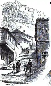 The road was depicted in an article on the colony that appeared in 1885 in Frank Leslie's Popular Monthly, a New York-based magazine, in a pastiche of ink drawings that also depict "Catland Bay" (Catalan Bay), Waterport Gate, the signal station and the rock from the Spanish lines. A donkey is depicted in the foreground.[15] Jeanie Conan depicted the picturesque road in a watercolour titled "Flat Bastion Rd. Gibraltar" in 1888.[16] A visitor noted that the "Ladysmith club" on the Flat Bastion Road was holding masquerades in its salons, while elsewhere the Salvation Army was preaching and parading signs with advice from the gospels.[17]