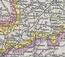 The eastern part of the district, which was ceded to Poland in 1920 included the following towns and communities: