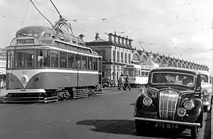 Trams in front of the second Fleetwood station on Queen's Terrace in 1959