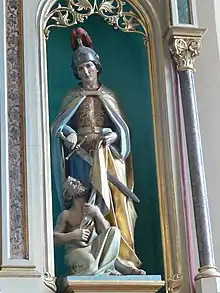 Hawkwood, the commander of the troops, is caring for a young nun he mistakenly attacked during the siege. Arnolfini promises to get medical attention for her, while Hawkwood leads Arnolfini's cavalry, betraying his former lieutenant, Martin. The cavalry ejects the mercenaries from the city without their loot. Soon after, Martin's son is stillborn. Burying the infant unearths a wooden statue of Saint Martin of Tours—a saint with a sword. The mercenaries' cardinal views this as a sign from God to follow Martin as their new leader.