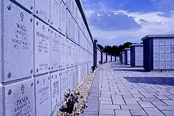 A carillon was constructed by the World War II AMVETS organization in an open area adjacent to the first administration building. It was dedicated on October 9, 1993. The cemetery contains a Memorial Pathway that in 2003 featured 47 plaques, statues, monuments, etc., honoring America's soldiers from 20th-century conflicts.[2]