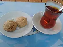 Flour kurabiye (Turkish: Un kurabiyesi) is a kind of Turkish cookie that is made from butter, sunflower oil (or another mild flavored oil), baking powder, and the namesake ingredient flour. Generally, vanilla powder (commonly used as a substitute for vanilla extract in Turkish baked goods) is also added. Flour kurabiye is a variant of kurabiye.