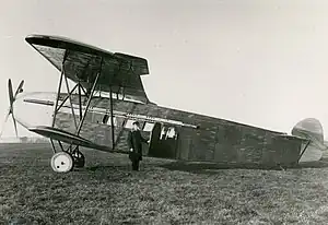 The Fokker F.V[1] was a Dutch airliner created by Fokker in the 1920s. The most interesting property of the F.V was that it could be configured either as a biplane or a monoplane, as the lower wing could be removed. It was not a success and only one was built.