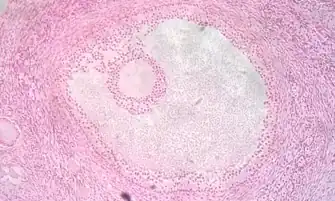 - ↑ Zhang J, Liu Y, Yao W, Li Q, Liu H, Pan Z (July 2018). "Initiation of follicular atresia: gene networks during early atresia in pig ovaries". Reproduction. 156 (1): 23–33. doi:10.1530/REP-18-0058. PMID 29743261. S2CID 13689486.