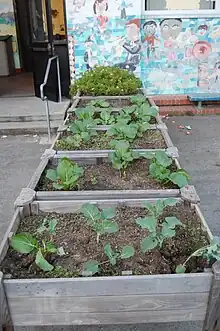 Urban agriculture (UA) is another way that helps when it comes to having access to fresh food in urban cities. Urban agriculture is one of the responses combating the lack of fresh foods in communities that need fresh foods. There are communities that are turning vacant lots into a community gardens and urban areas in which they can use agriculture to grow fresh foods for the community.[53] Urban agriculture has many benefits such as being a "local source of fresh healthy food", and bringing communities together and reducing environmental problems.[53] An issue with urban agriculture is that in many food desert communities, the soil has been contaminated from local pollutants, which makes it harder to use plots of land as a garden to grow fresh food.[54] For example, in Oakland, California, there has been a rise in using urban agriculture as a means to get areas that are in the middle of food deserts to grow and produce their own food.[55]