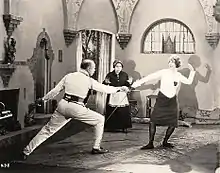 Prepping for scene, director John Robertson spars with Elsie Ferguson.