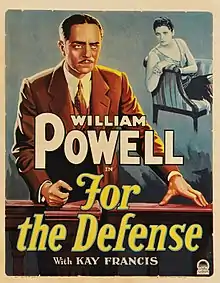 For the Defense is a 1930 pre-Code crime drama film starring William Powell as a lawyer whose ethics are challenged when the woman he loves hits and kills a pedestrian while out driving with another suitor.