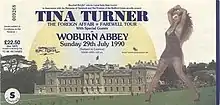 Foreign Affair: The Farewell Tour (also known as the Foreign Affair: European Tour 1990[1][2]) is the seventh concert tour by singer Tina Turner. The tour supported her seventh studio album Foreign Affair (1989). The tour was Turner's first stadium tour and only reached European countries. Overall, the tour was attended by approximately three million people—breaking the record for a European tour that was previously set by The Rolling Stones.[3][4][5]