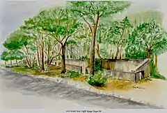 The US War Department approved construction of the rifle range on January 21, 1918 for small arms training of soldiers. After World War II, it was declared surplus and sold, and over the years left untended, the range walls were undermined due to tree roots and water infiltration. Of special concern were the load-bearing supports across interior doorways which were cracking and separating from the walls. In 2012, work started on restoring the range, which involved among other things using contracted labor and volunteers to initially stabilize the walls. Currently, Friends of Fort Caswell Rifle Range, a non-profit formed in 2015, is carrying on this task with the full support of the Town of Caswell Beach and the Caswell Dunes Homeowners Association.[4] On April 5, 2018, the U.S. World War I Centennial Commission and the Pritzker Military Museum and Library announced that the 1918 Fort Caswell Rifle Range was one of the one hundred WWI memorials chosen for a restoration grant and honored with the official national designation as "WWI Centennial Memorial".[5] And then on November 11, 2018, the 100th Anniversary of the WWI Armistice Day, the Brunswick County WWI Monument recently erected on site, was dedicated to commemorate the veterans who fought in the war.[6] In addition to managing the facility, in 2020 the Friends of Fort Caswell Rifle Range arranged to publish Brunswick County in the Great War[7] Containing biographic sketches of all known Brunswick County NC WWI service members, the book features a 25 page introductory section with photos and diagrams along with text about the Caswell Beach rifle pits that chronicles its history.