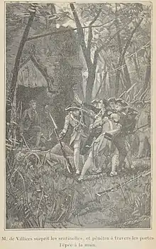 Possible representation of François Coulon de Villiers attacking Fort Granville.