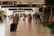 The airport has one terminal with three concourses: Concourse B serves Air Canada, Alaska Airlines, Avelo Airlines, Eurowings, Frontier, Southwest, and Sun Country; Concourse C serves Delta, United, and WestJet; and Concourse D serves American, Breeze, JetBlue, and Spirit. Customs and Immigration services for international flights are located on the lower level of Concourse B. The concourses are each completely separate and are not currently connected Airside, though the expansion underway will consolidate the three checkpoints into one. Concourse E is planned to be added on the west side of the terminal by 2027. The Concourse A designation has been reserved for an eventual fifth concourse to be added on the east side of the terminal.[29]