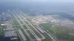 The airport sits on 13,555 acres (5,486 ha, 21.2 sq.mi.)[3][4] of land just southeast of Fort Myers, making it the third-largest airport in the United States in terms of land size (after Denver and Dallas/Fort Worth). 6,000 acres of the land has been conserved as swamp lands and set aside for environmental mitigation.[5]