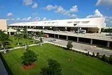 With the original terminal operating at more than double its intended capacity, construction of a new Midfield Terminal Complex began in February 2002. The $438 million terminal opened on September 9, 2005. The terminal has three concourses and 28 gates. Demolition of the original terminal north of the airfield was completed in spring 2006. However, the original terminal's parking lot still stands at the end of Chamberlin Parkway. The former terminal's ramp, now known as North Ramp, is now primarily used as a base for Western Global Airlines, an Estero-based cargo airline.[17] In early 2015, Terminal Access Road, the airport's main entrance road, was extended past Treeline Avenue to connect directly to Interstate 75, allowing airport-related traffic to avoid local streets. The airport can now be accessed directly from the freeway at Exit 128.[18] Terminal Access Road was then expanded to six lanes in late 2016.[19]
