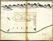 It was built in an isolated rural area, 27 meters above sea level, with a rectangular plan, with service buildings and a cistern integrated into the building's platform. Its built surface corresponded to 408 m2 with an adjacent land of 10,392 m2, making a total of 10,800 m2.[5]