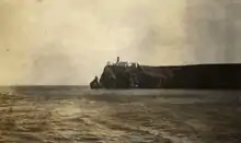 Human occupation in Cabo de São Vicente dates back to prehistory, and lithic materials of the Musterian and Mirense typology were collected at the site, chronologically integrated in the Paleolithic and Mesolithic periods, polished stone pieces from the Neolithic, and a skewer in Iron Age bronze.[7][8] Several classical authors, such as Ephorus, Artemidorus and Strabo, mention, probably based on the Massaliot Periplus, that there were monoliths of religious function in the cape, which were surrounded by visitors, and then used in libations.[8] In 1639 a burial tomb was discovered at the west end of the cape, with an epigraphed tombstone, which probably dates back to the Roman period.[9]