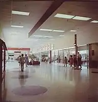 Fort Saginaw Mall opened in Buena Vista Township, a charter township just outside the city limits of Saginaw, Michigan, on December 2, 1966.[3] It was an L-shaped enclosed mall, comprising an eastern and southern wing. Federal's, a department store based in Detroit, Michigan, served as the eastern anchor store;[2][4] at the southern end, but not accessible from the mall concourse itself, was a Kmart discount store with adjacent Kmart Foods supermarket. A five-and-dime store called Scott's 5 & 10, as well as a small movie theater, were also located in the southern wing, and overall, the mall comprised forty stores at its peak.[2] It was the only mall in Saginaw until Fashion Square Mall opened in 1972, on the north end of town.